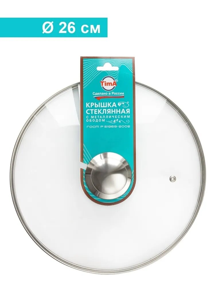 Отзывы на Крышка стеклянная с металическим ободом Tima 26 см металическая ручка