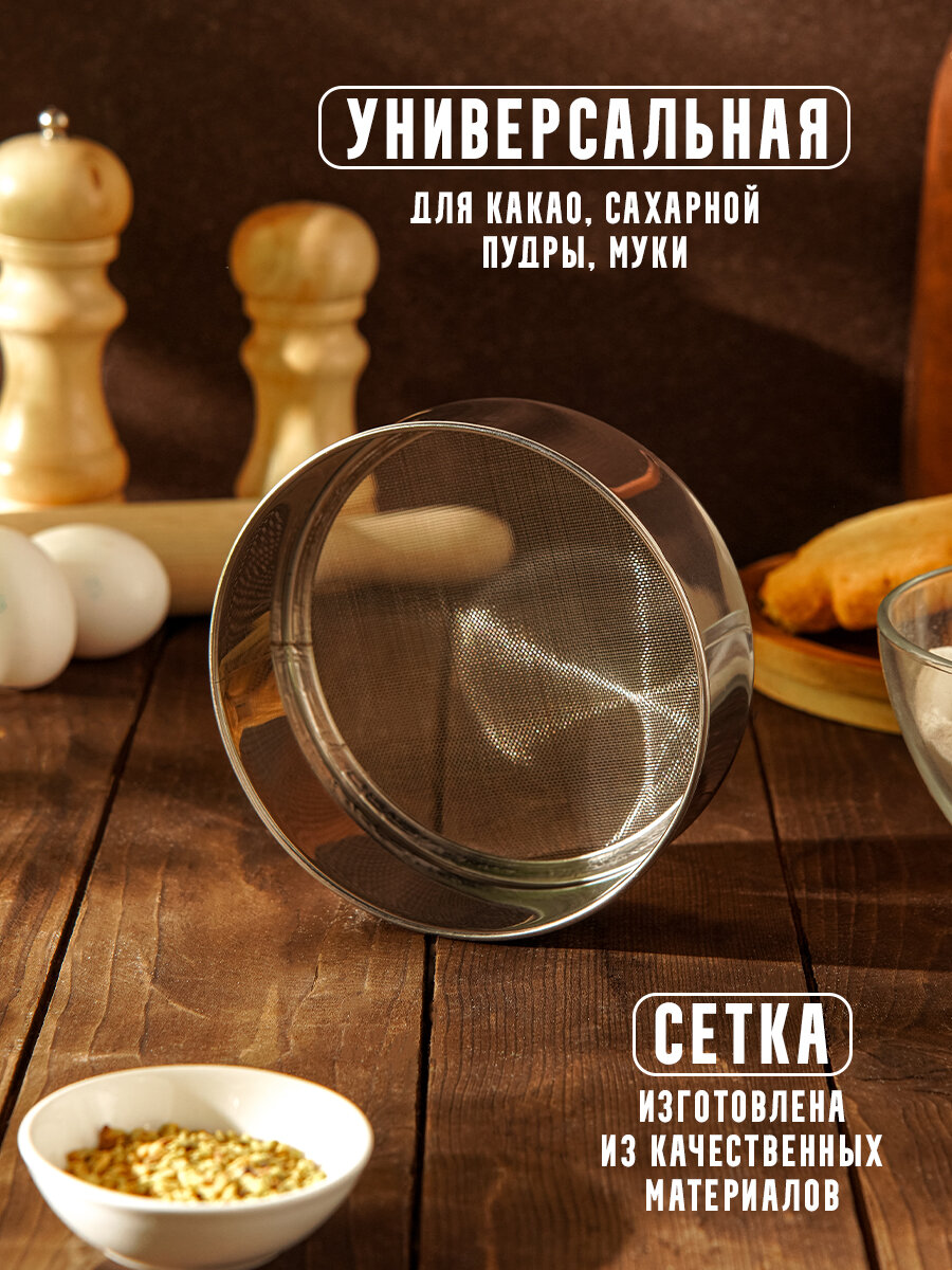 Сито для просеивания Доляна «Металлик», d=17,5 см, цвет серебристый 558 ₽