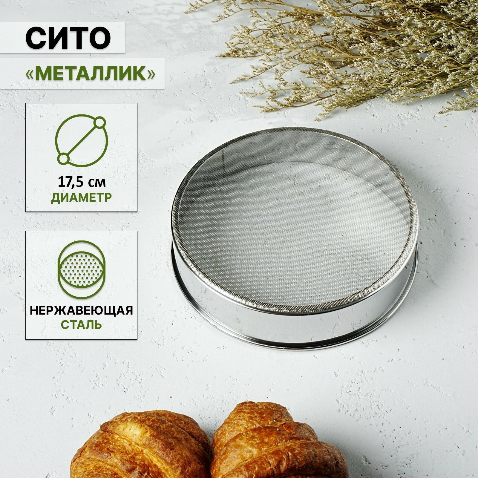 Сито для просеивания Доляна «Металлик», d=17,5 см, цвет серебристый информация: