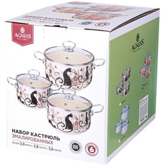 10 цен на Набор кастрюль Agness "парижские коты", 6пр. 2,0/2,8/3,6л,18х11/20х12/22х13см