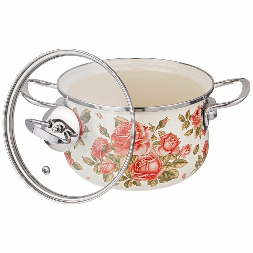Набор кастрюль Agness "Корейская Роза", эмалированные, 3 штуки; по 2 л, 2,8 л и 3,6 л, для всех видов плит информация: