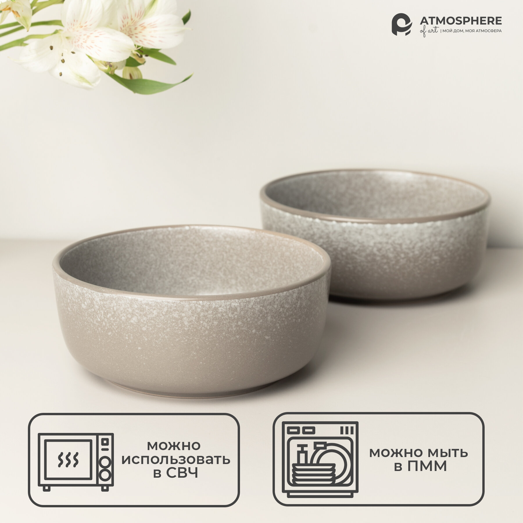 Набор салатников керамических Atmosphere of Art "Terre" - 2шт, 780мл, серый-коричневый информация: