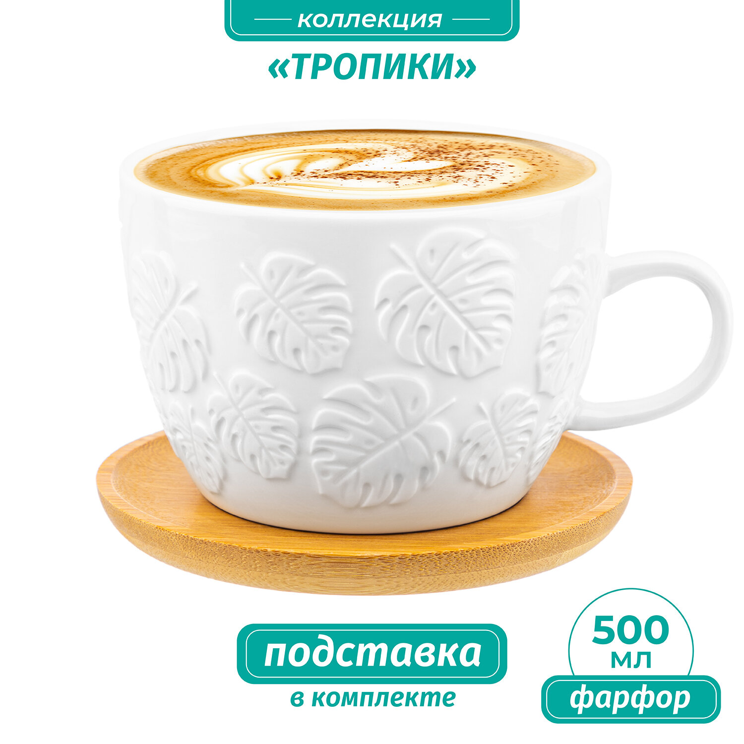 10 цен на Чашка, кружка для чая, кофе 500 мл Elan Gallery Тропики на деревянной подставке