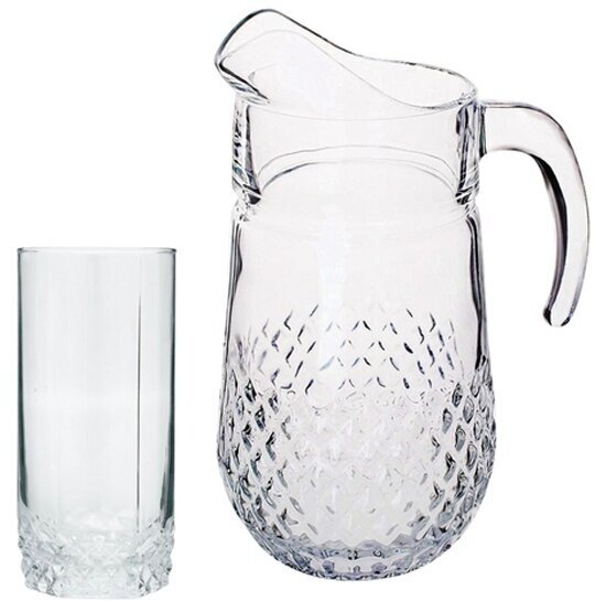 | Комплектация | Кувшин (1340 мл), 20.5х9.5 см; стаканы (290 мл), 13х6 см - 6 шт |