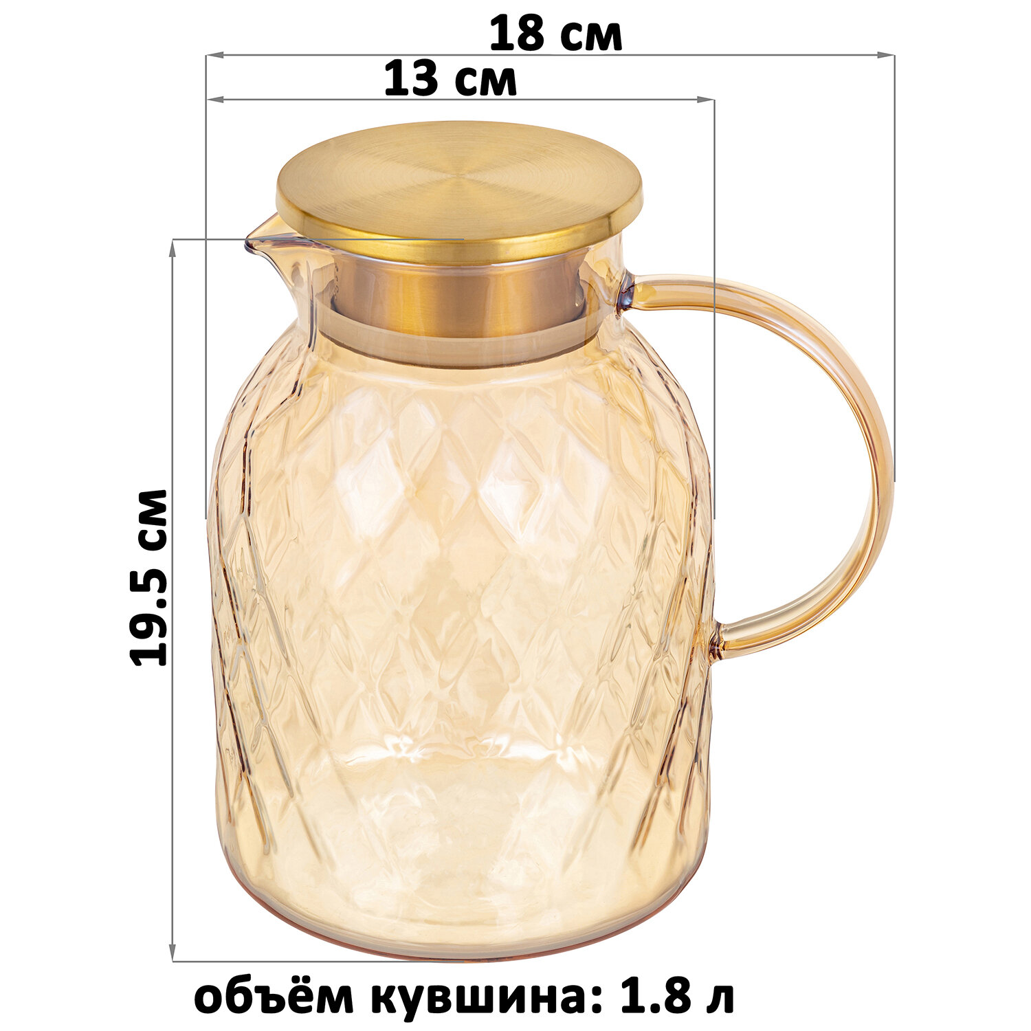 Кувшин / графин 1,8 л 18х13х19,5 см Elan Gallery Crystal glass с металлической крышкой с силиконовым уплотнителем
