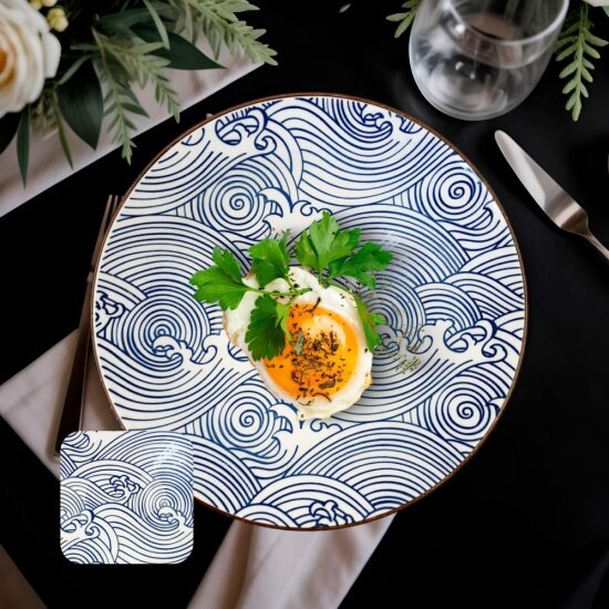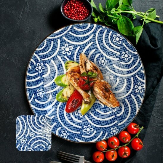 Керамическая тарелка Homium, Japanese Collection в японском стиле, обеденная тарелка с рисунком, голубой, D20см, набор 2шт.