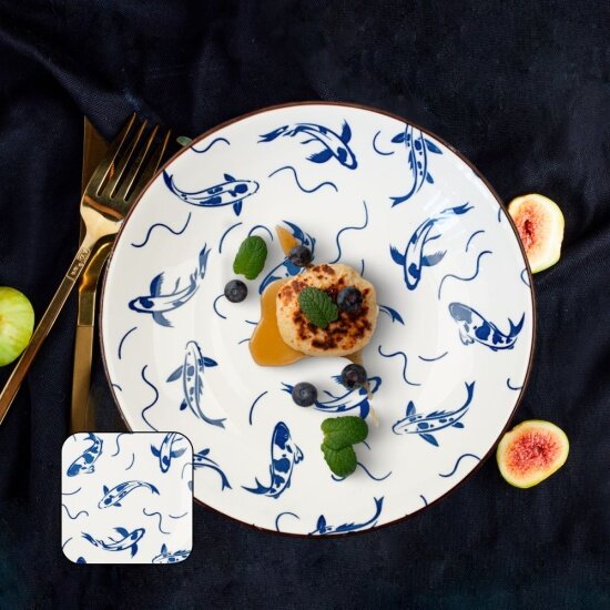 Тарелка керамическая Homium, Japanese Collection в японском стиле Рыбки голубой, D20см, набор 2шт