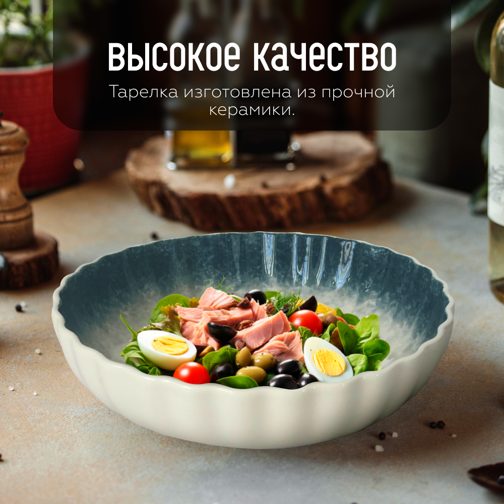 Глубокая керамическая тарелка салатник для сервировки стола и подачи блюд, столовая посуда для кухни, 23,5 см, 1.6л 1 200 ₽