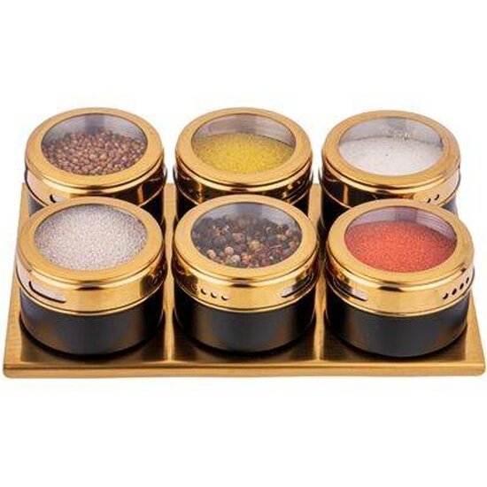 Набор для специй agness 7 пр. черное золото на магнитах+метал. Подставка 20*13*5 см KSG-912-034