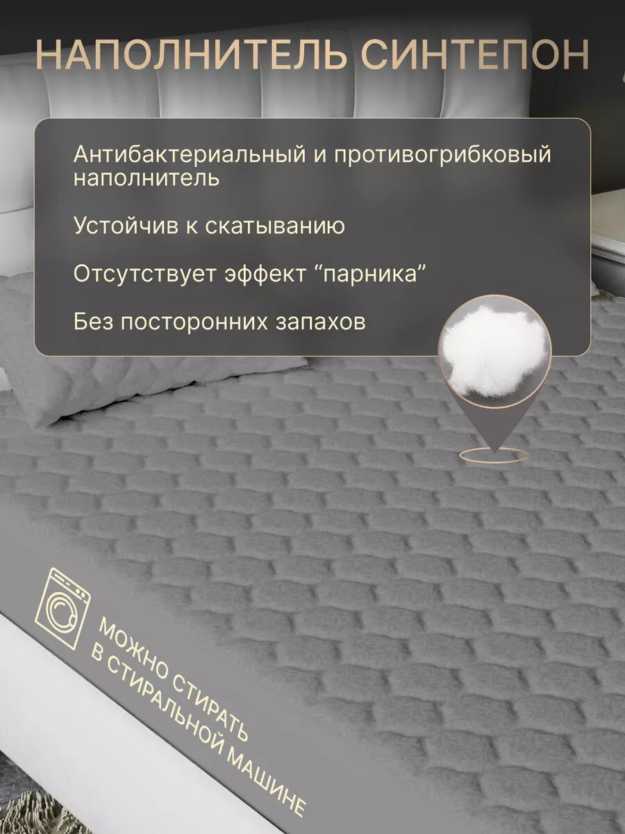 Наматрасник 140х200 стеганый на резинке, защитный, с бортами, серый информация: