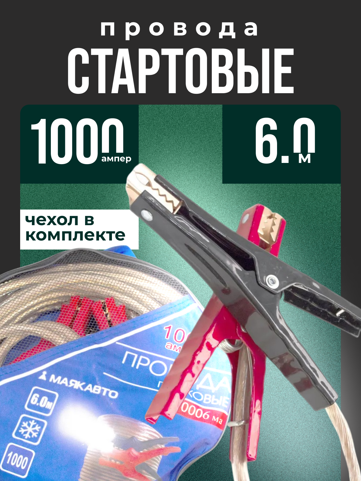 10 цен на Провода пусковые для прикуривания автомобиля МаякАвто, 1000А, 6 метров, в тетроновой сумке с ручкой, 10006ма