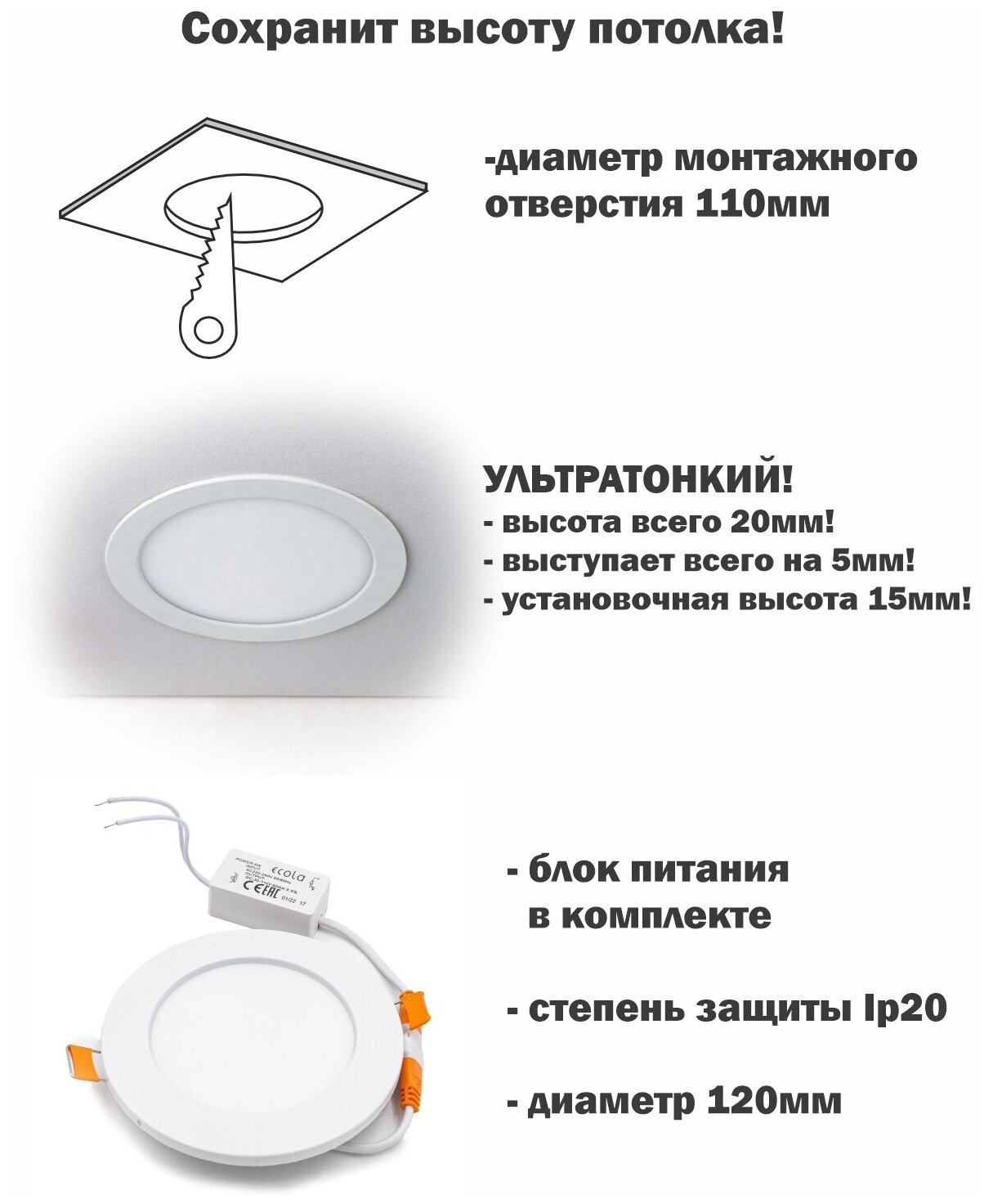 Тонкий светильник встраиваемый Ecola "даунлайт" 6 Вт 6400К холодный свет (120х20мм) Потолочный, точечный светильник 6,0W информация: