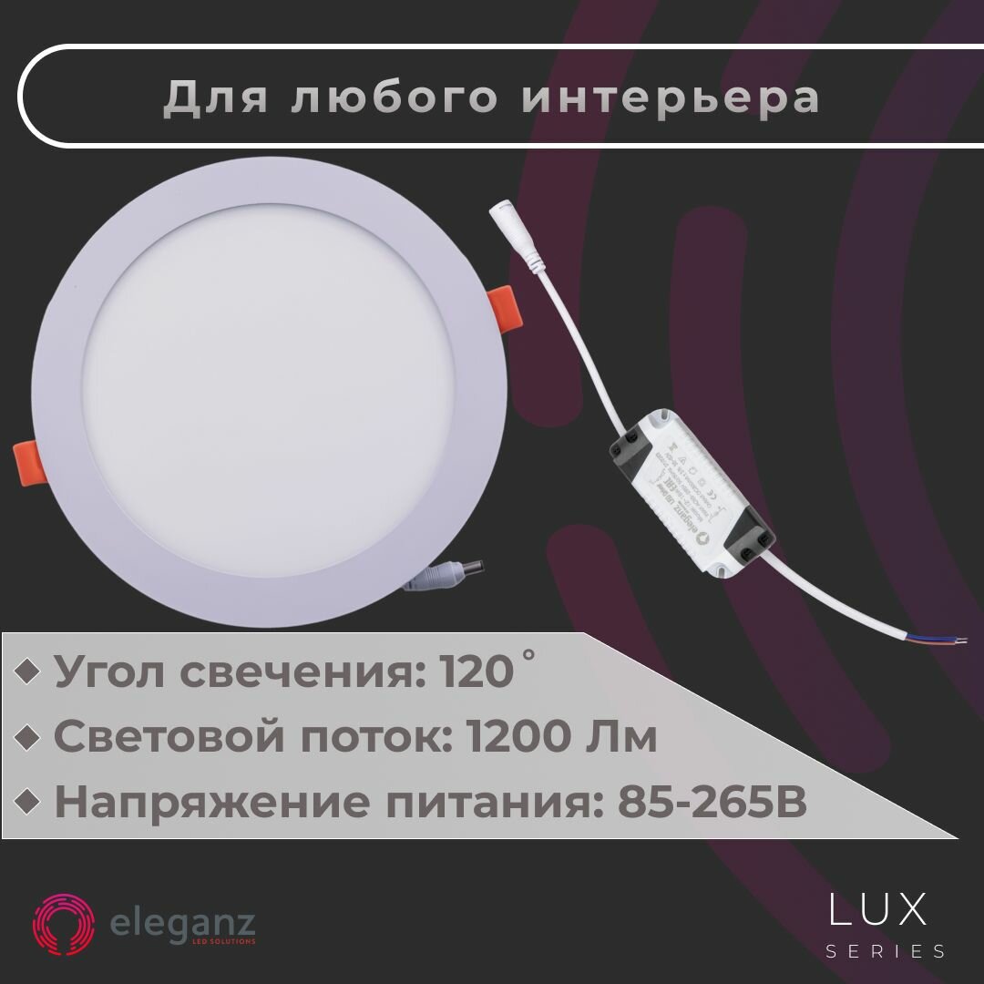 Встраиваемый светильник "Eleganz" 18Вт Круг 6000К Светодиодная алюминиевая панель от сети 220 В, белый корпус 1 215 ₽