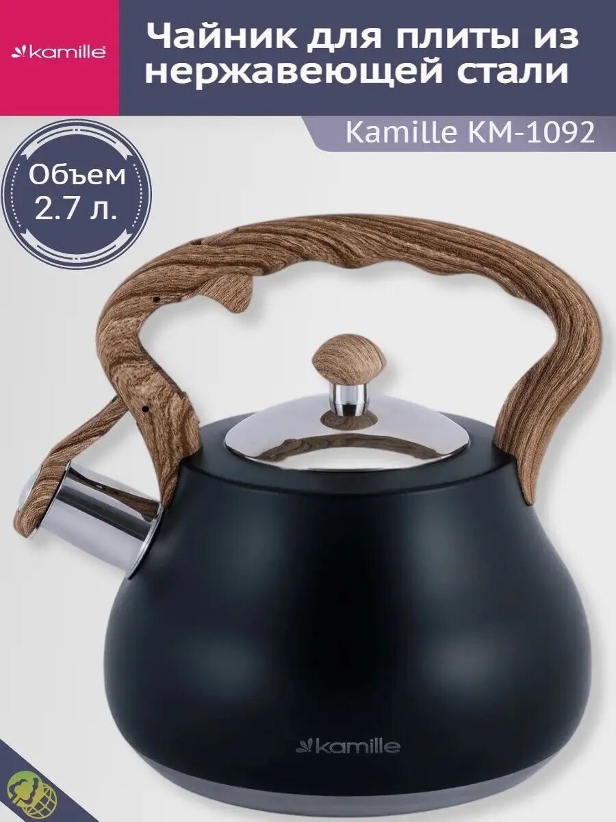 Чайник 2,5л из нержавеющей стали со свистком и ручкой soft touch Kamille.
