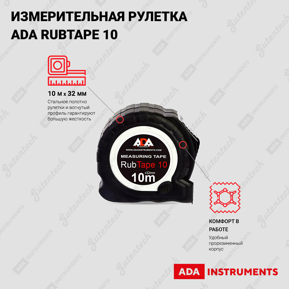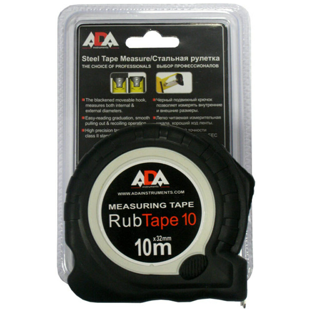10 цен на Рулетка ударопрочная ADA RubTape 10 с полимерным покрытием ленты (сталь, с двумя стопами, 10 м)