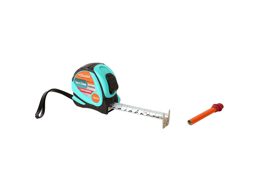 Рулетка 5x25мм, с карандашом, обрезиненная, 2-ст. зацеп, магнит, Кулибин, pat, Sturm! 2010-11-5-25 информация: