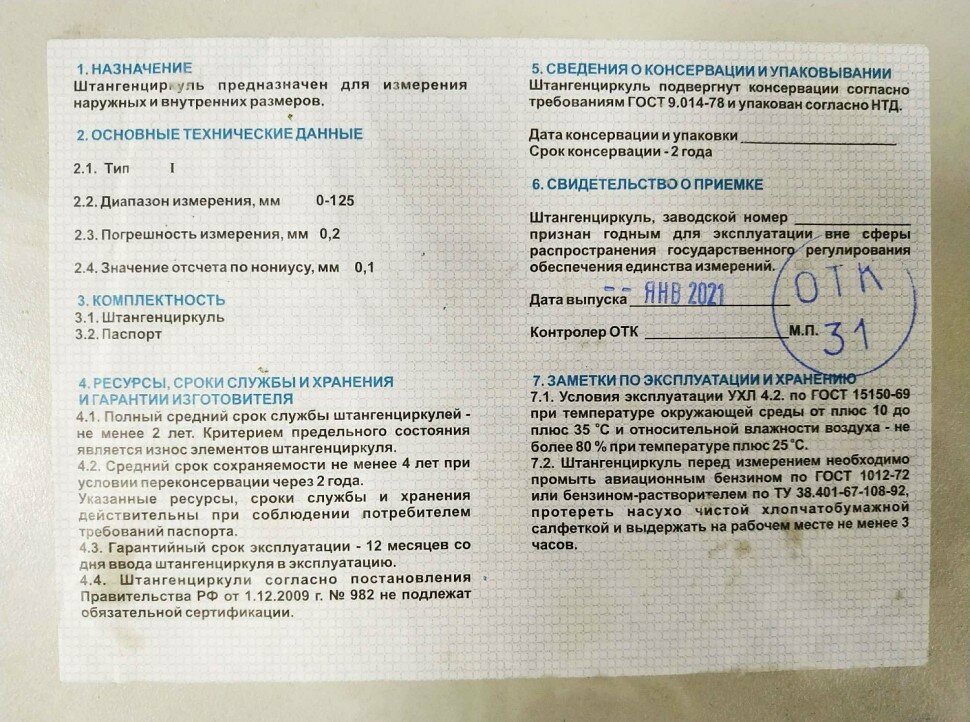 Отзывы на RUSSIA Штангенциркуль металлический тип 1, класс точности 2, 125мм, шаг 0,1мм , ( 3445-125 )
