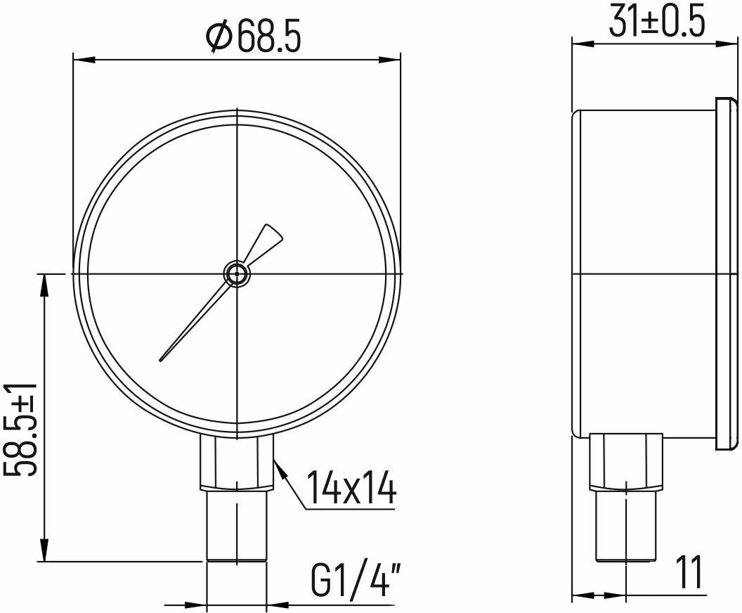 Манометр ТМ-310T.00 (0.0,16 МРа) G 1/4: класс точности -2,5 росма