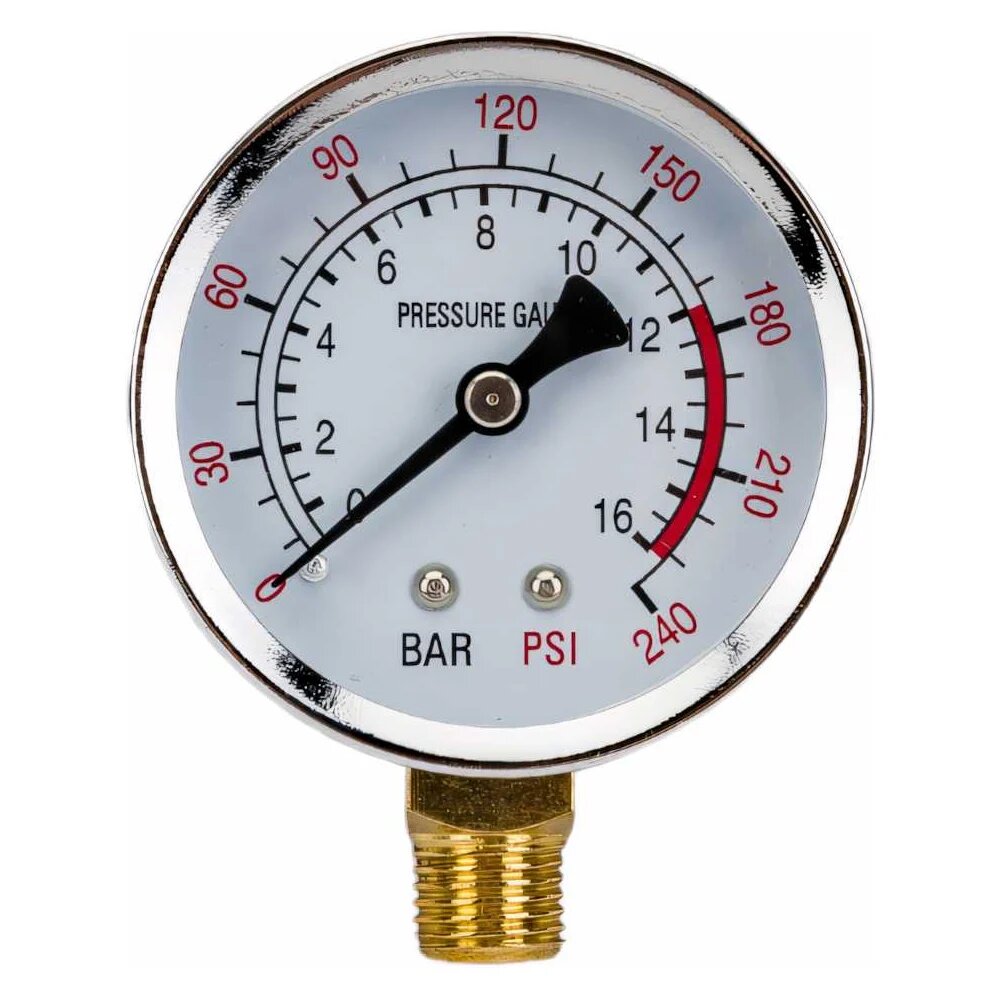 Манометр ARIDE 53 мм, 2х15 бар (220 PSI), 2", черный, Арайд, М 53 2 15