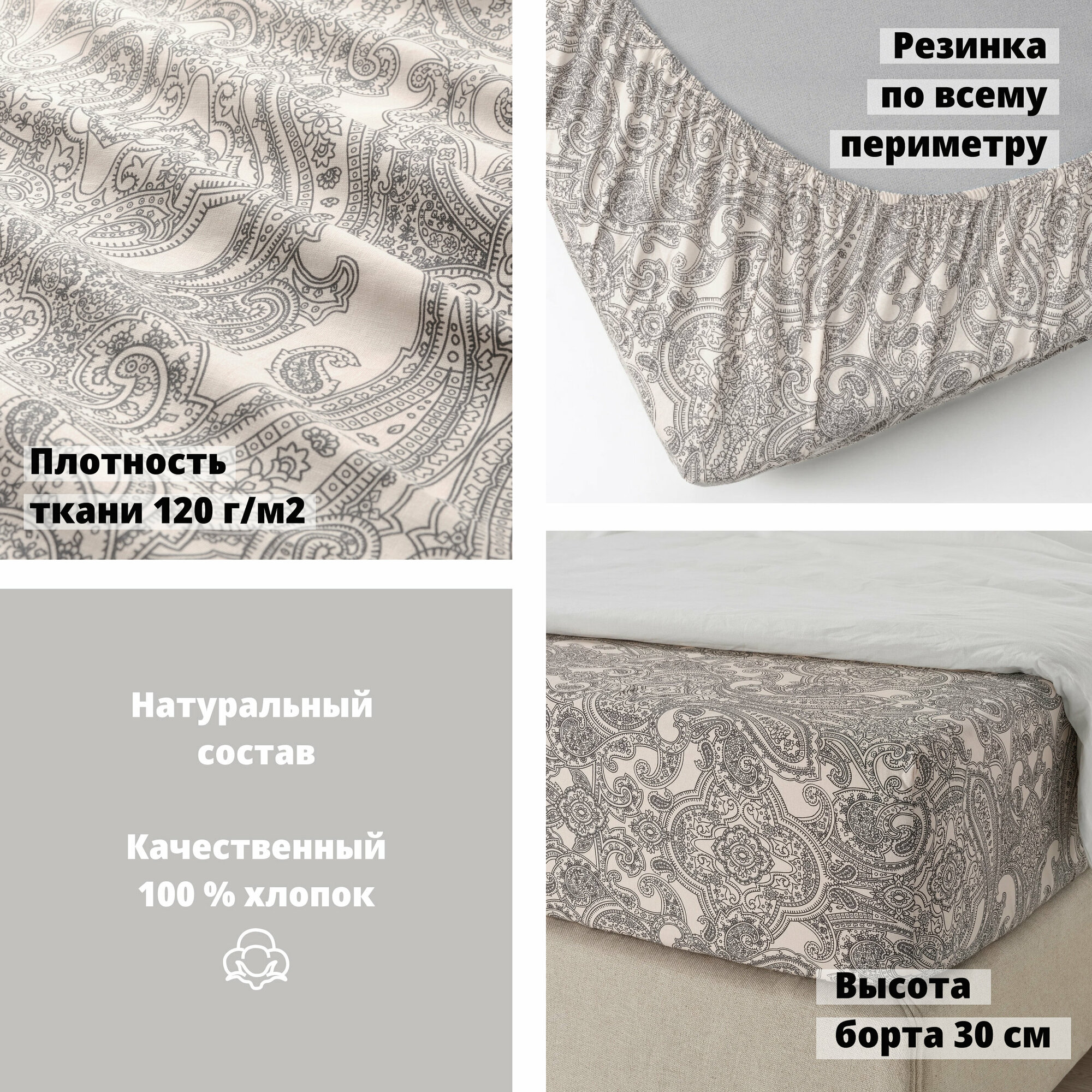 Простынь на резинке натяжная Ambesonne, 90х200 Микросатин аналог икеа