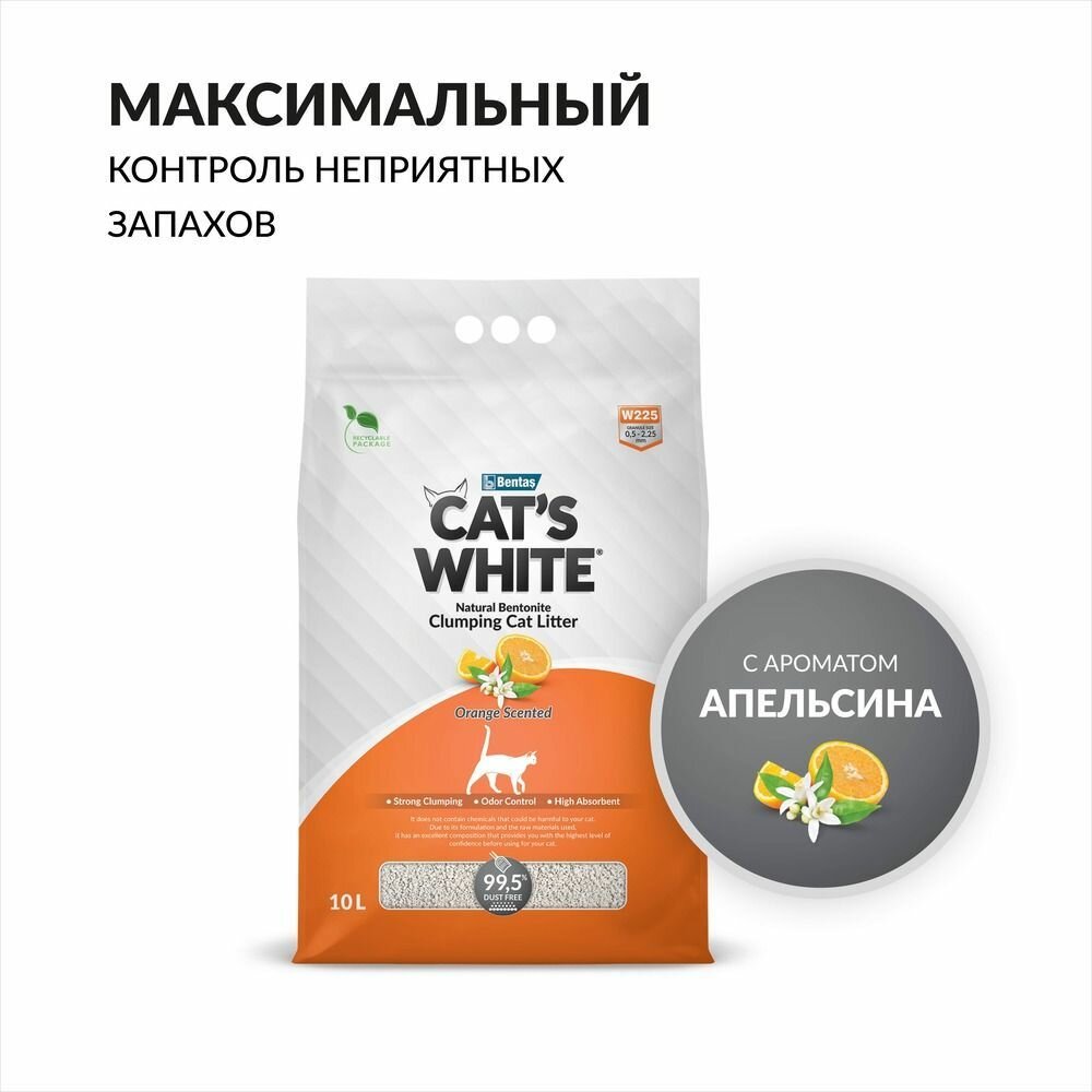 10 цен на Cat's White Orange комкующийся наполнитель с ароматом апельсина для кошачьего туалета (10л)