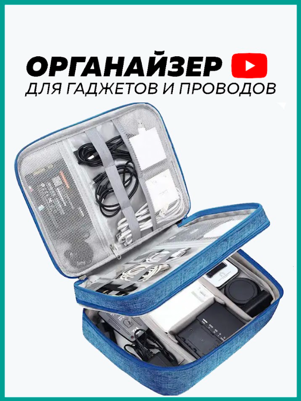 10 цен на Органайзер для аксессуаров и проводов ( дорожная для хранения гаджетов вещей сумочка в поездку бокс ) (Голубой)