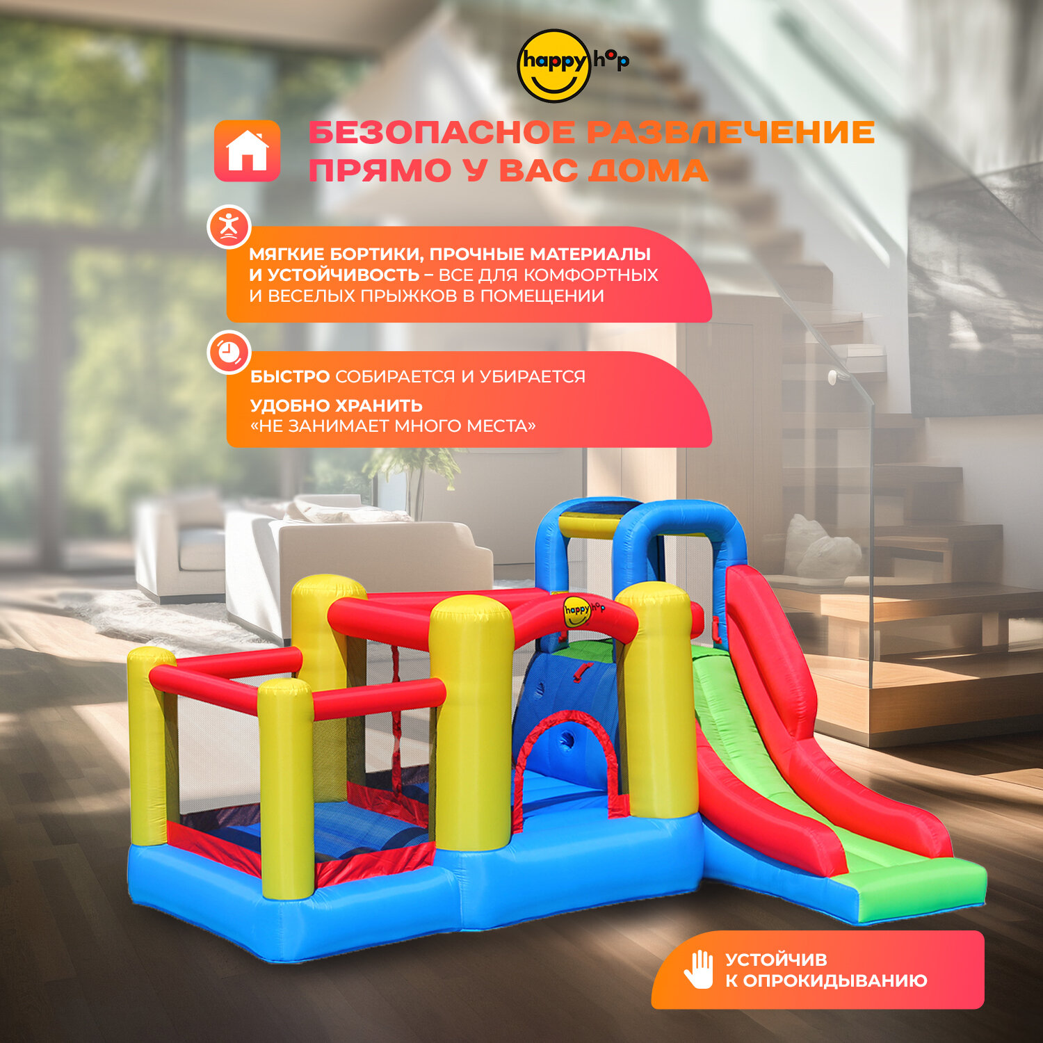 0 отзывов, средняя оценка 0. Чтобы купить «Детский надувной батут Happy Hop для дома и улицы "Игровой центр 5 в 1", с горкой, с защитной сеткой, 370х300х210 см» по лучшей цене мы сканируем авито, алиэкспресс, маркет, озон, савеловский, плеер, горбушку, беру, официальные сайты и находим минимальную. Администрация не несет ответсвенность актуальность цен на Детский надувной батут Happy Hop для дома и улицы "Игровой центр 5 в 1", с горкой, с защитной сеткой, 370х300х210 см, более подробно узнавайте на сайте магазина.