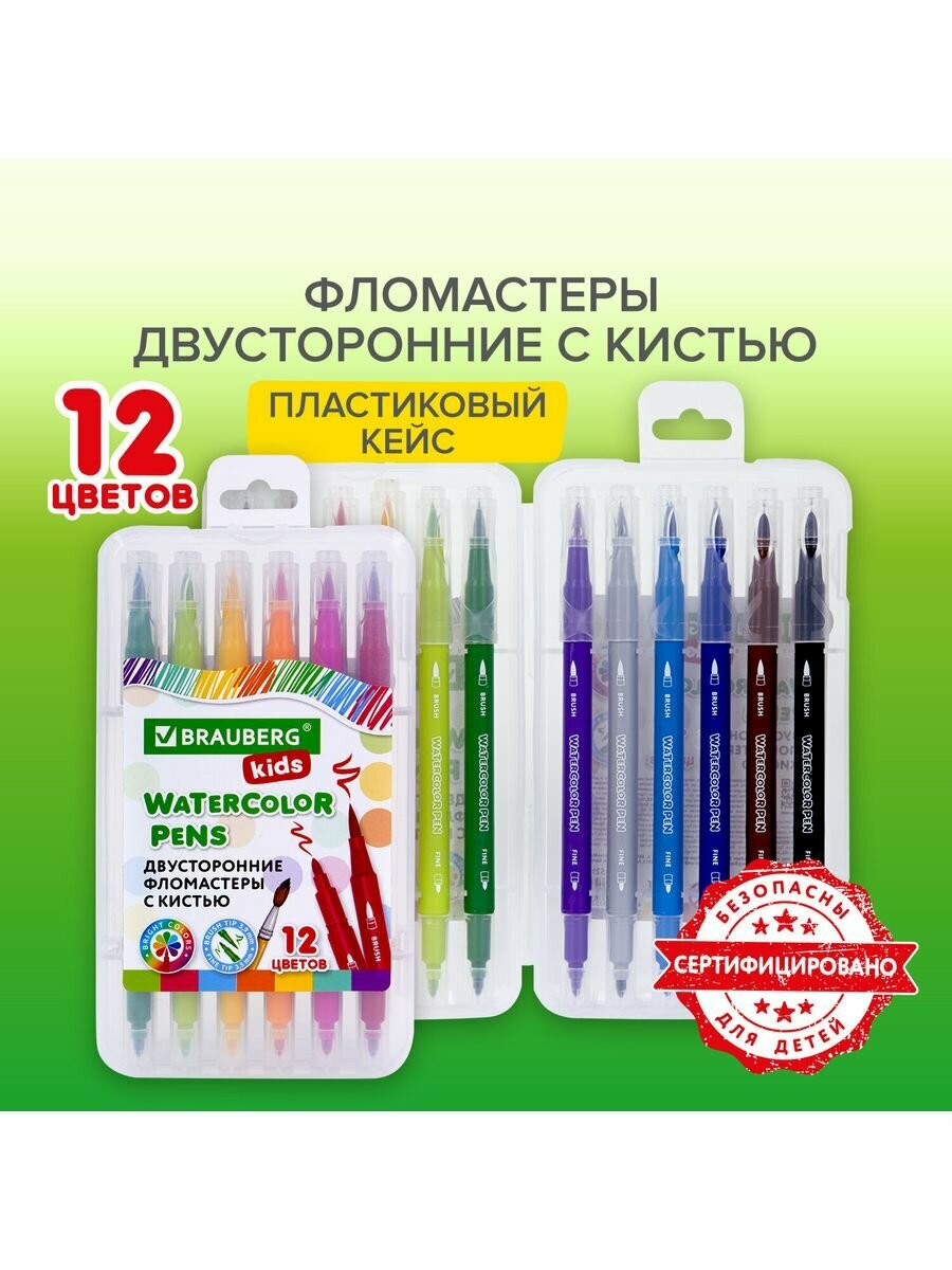 Фломастеры с кистью двусторонние, 12 цветов информация: