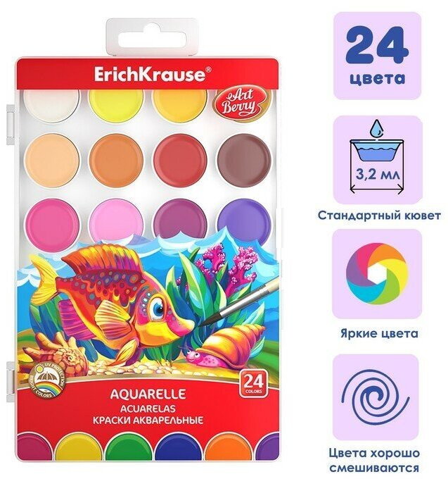 Акварель 24 цвета ErichKrause ArtBerry, яркая палитра с УФ-защитой, пластик, европодвес, без кисти информация: