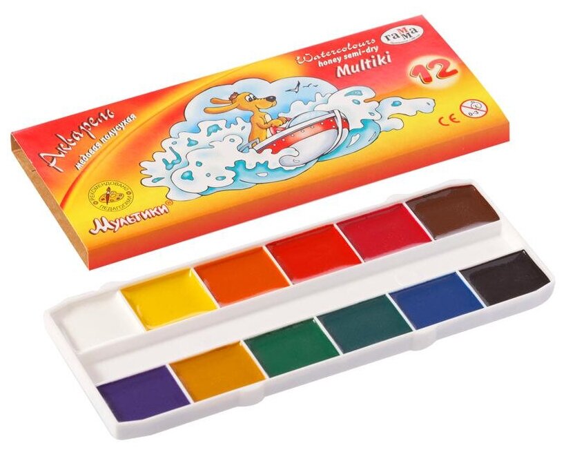 Краски акварельные Гамма Мультики, медовая, 12 цветов, без кисти, 211048 1254247 информация:
