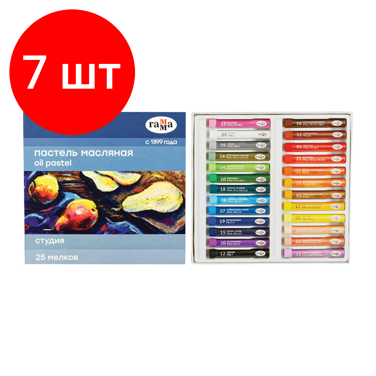 Комплект 7 шт, Пастель масляная Гамма "Студия", 25 мелков, картон. упаковка информация: