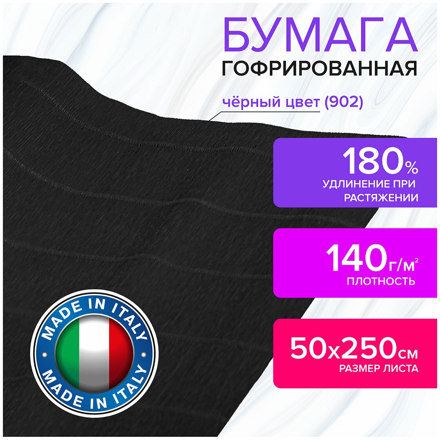 Бумага гофрированная/креповая (ИТАЛИЯ) 140 г/м2, 50х250 см, черная (902), BRAUBERG FIORE информация: