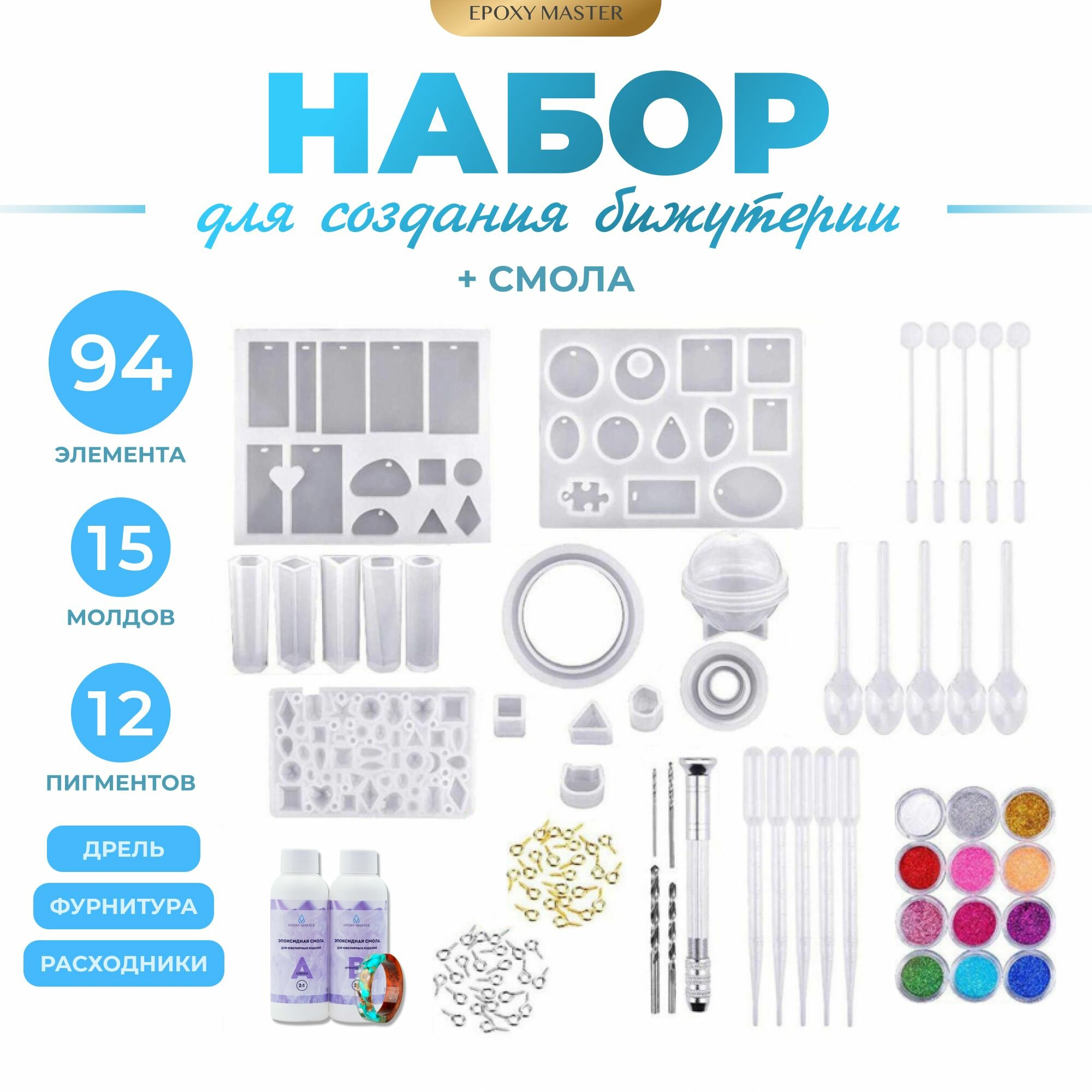 Отзывы на Набор для творчества с эпоксидной смолой и силиконовыми молдами, набор для создания украшений и бижутерии EPOXYMASTER