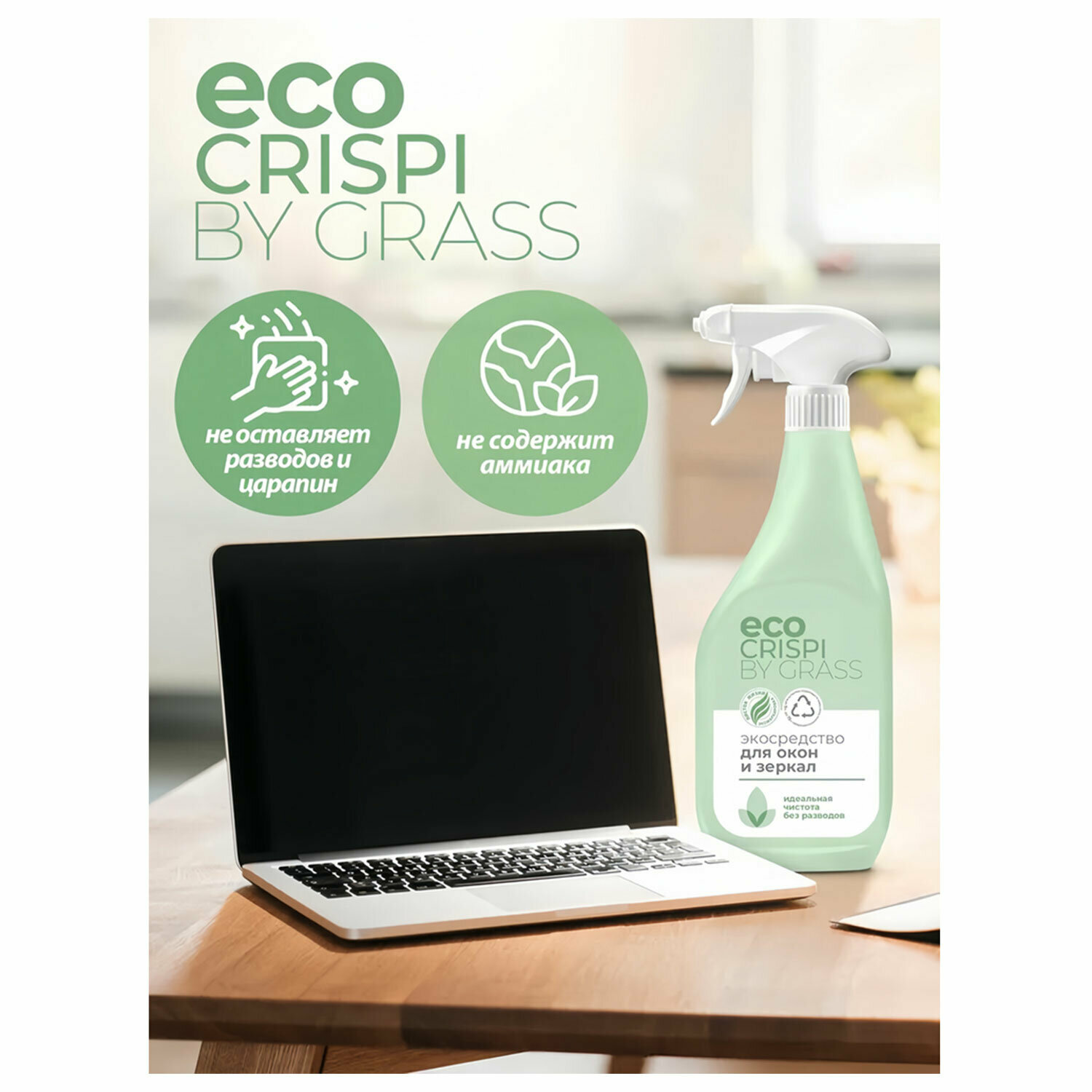 Отзывы на Упаковка 8 шт. Средство для мытья стекол и зеркал ЭКО 600 мл CRISPI by GRASS, биоразлагаемое, распылитель, 125697