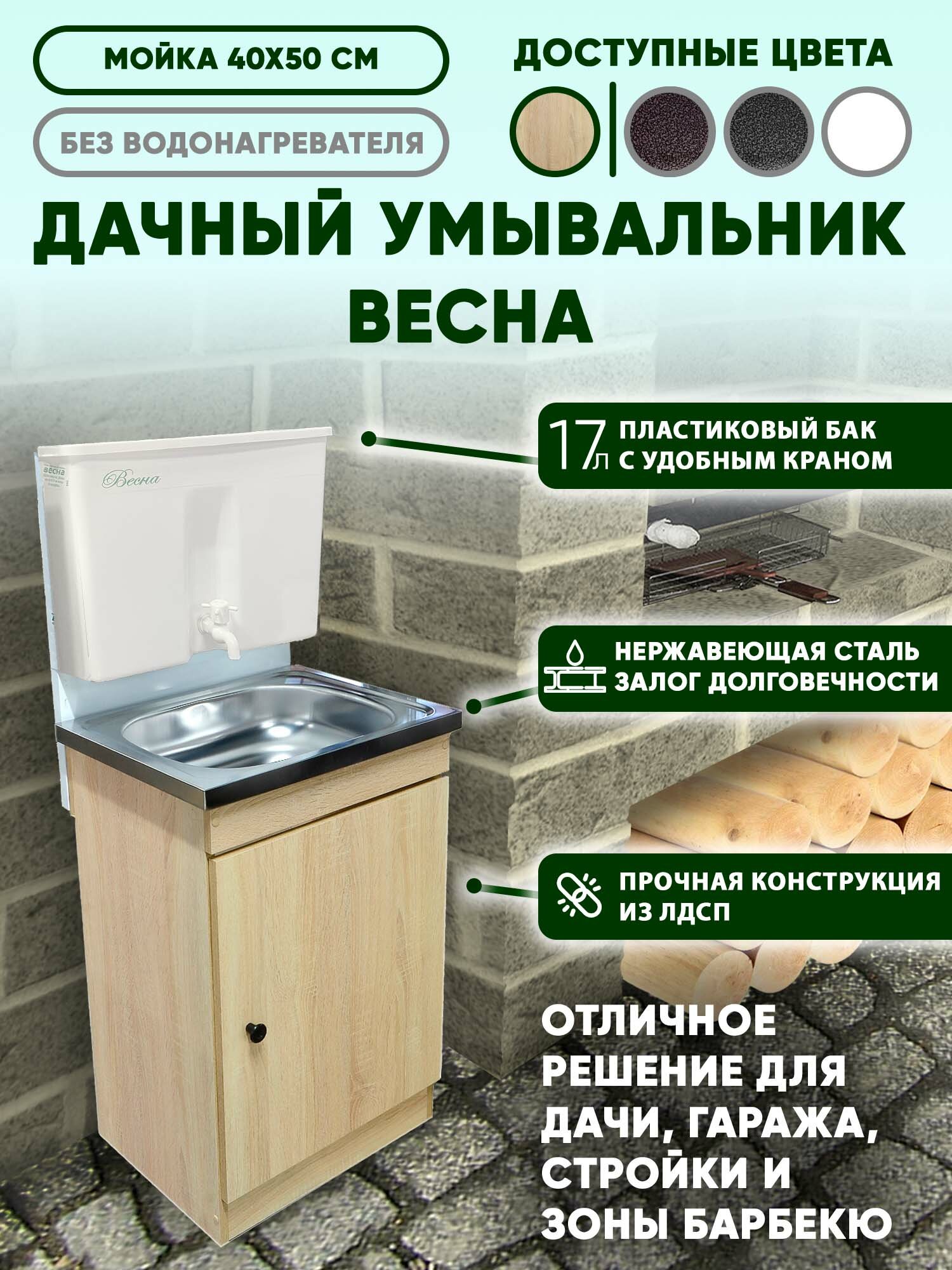 Умывальник дачный "Весна" без подогрева, тумба из ЛДСП, пластмассовый бак, нержавеющая мойка информация: