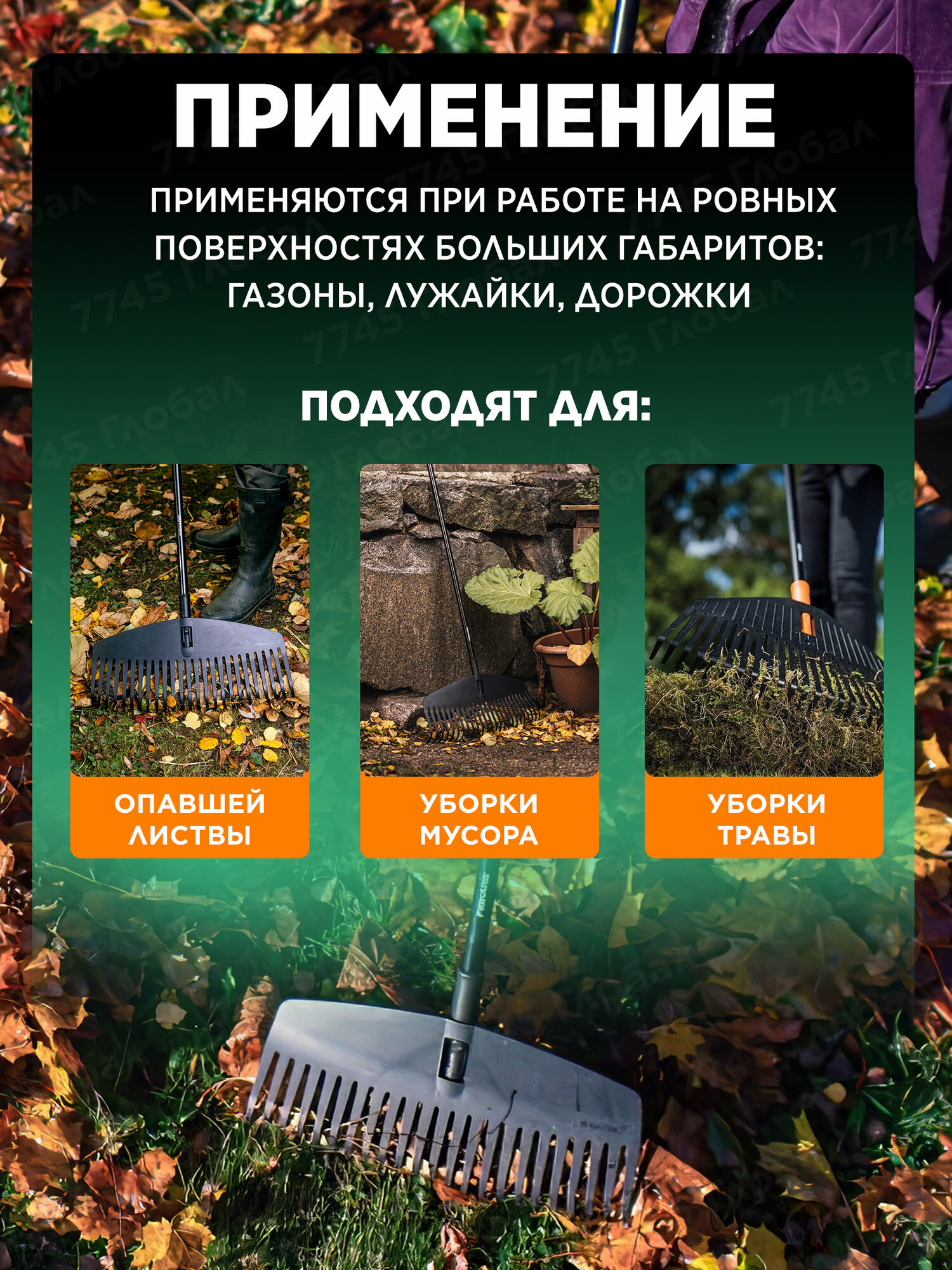 10 цен на Грабли садовые веерные без черенка FISKARS Solid M 1063089, для листьев и травы