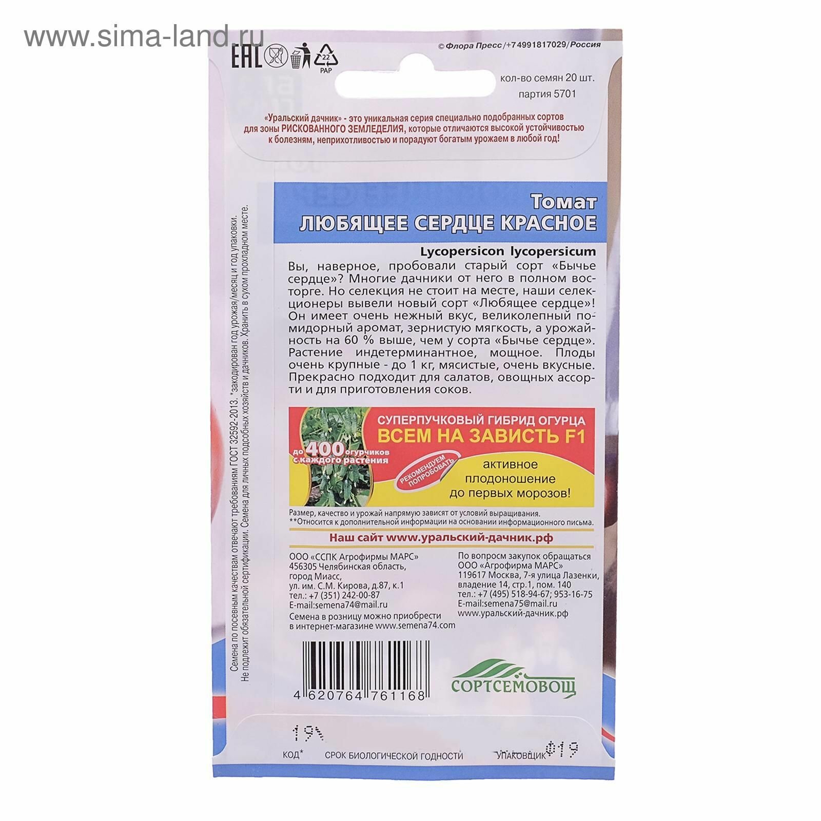 Семена Томат "Любящее Сердце" красное, высокорослый, крупноплодный, 20 шт информация: