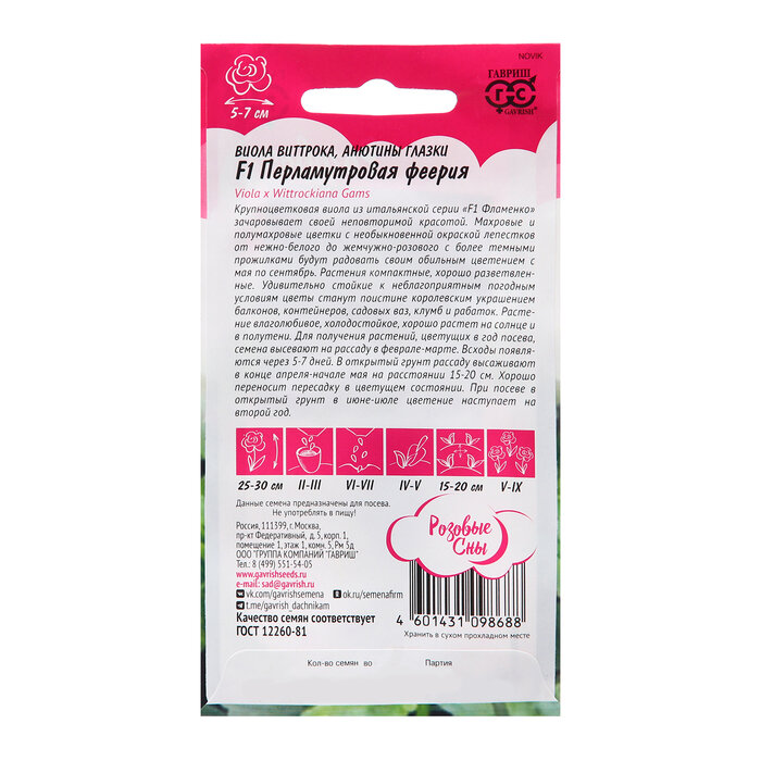 Семена Виола "Перламутровая феерия", ц/п, F1, 5 шт. информация:
