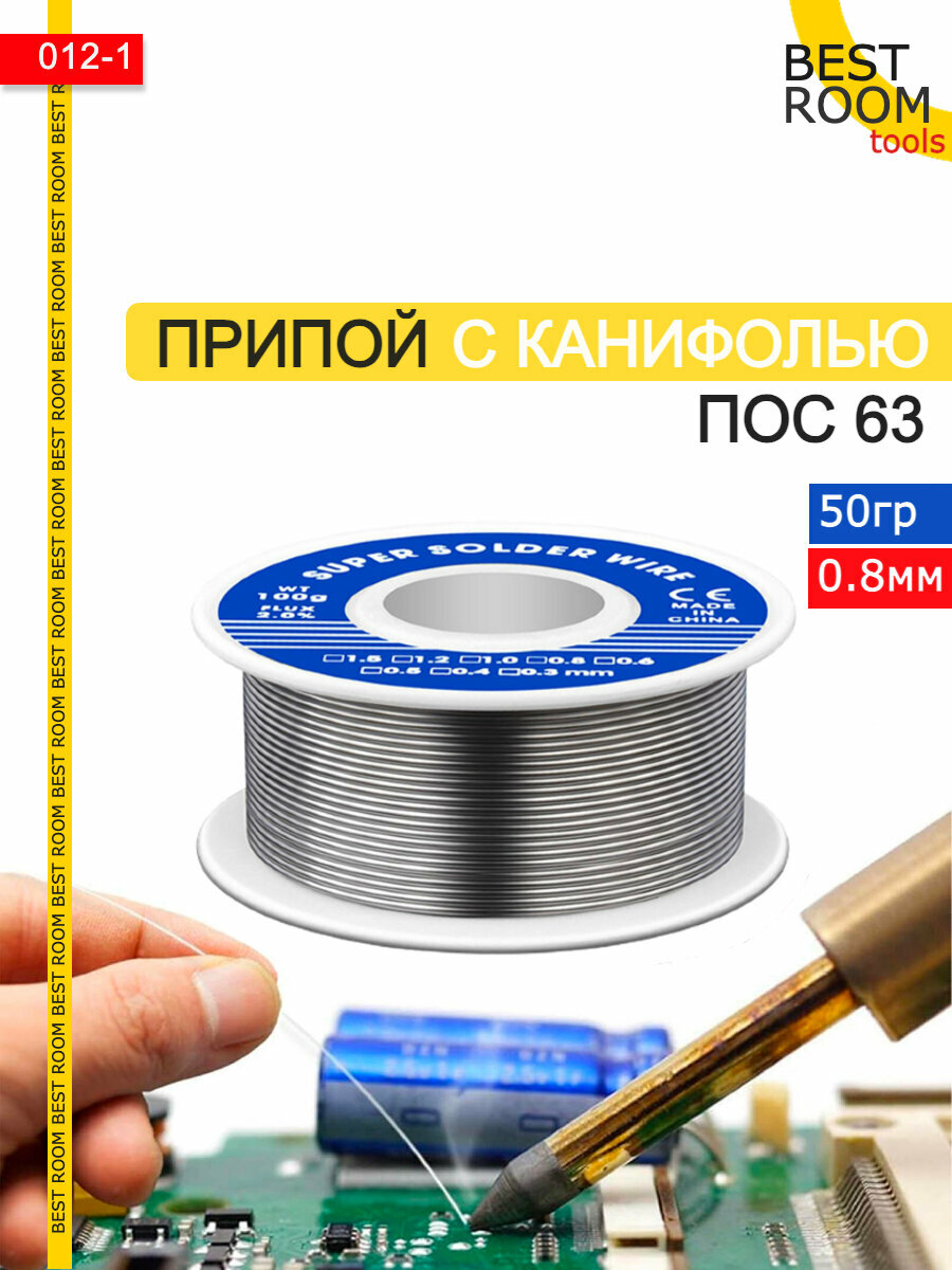 Припой с флюсом Best Room, 0,8мм. твердый, 50г. ПОС-63 в катушке информация: