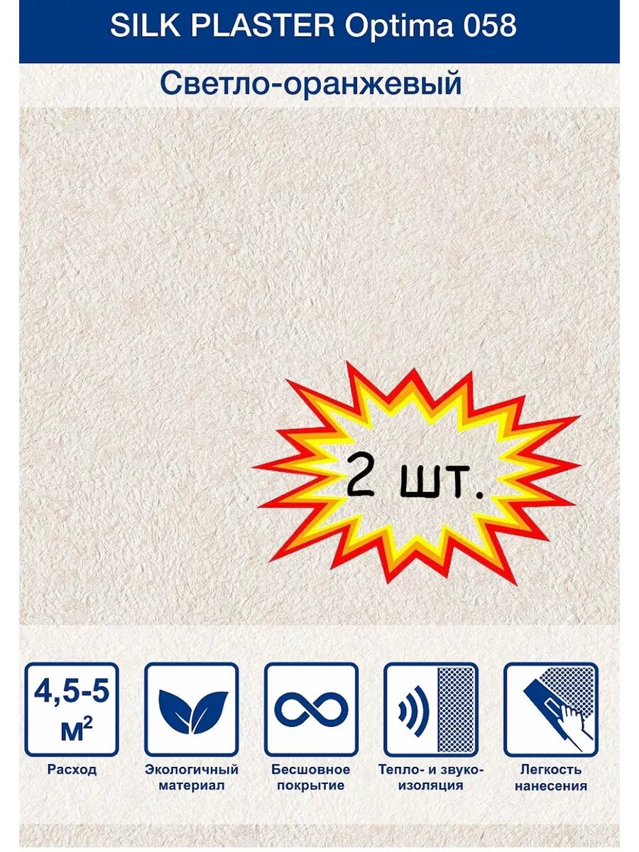 Жидкие обои Silk Plaster Оптима 058, комплект-6шт (до 27кв. м), светло-оранжевый 6 738 ₽