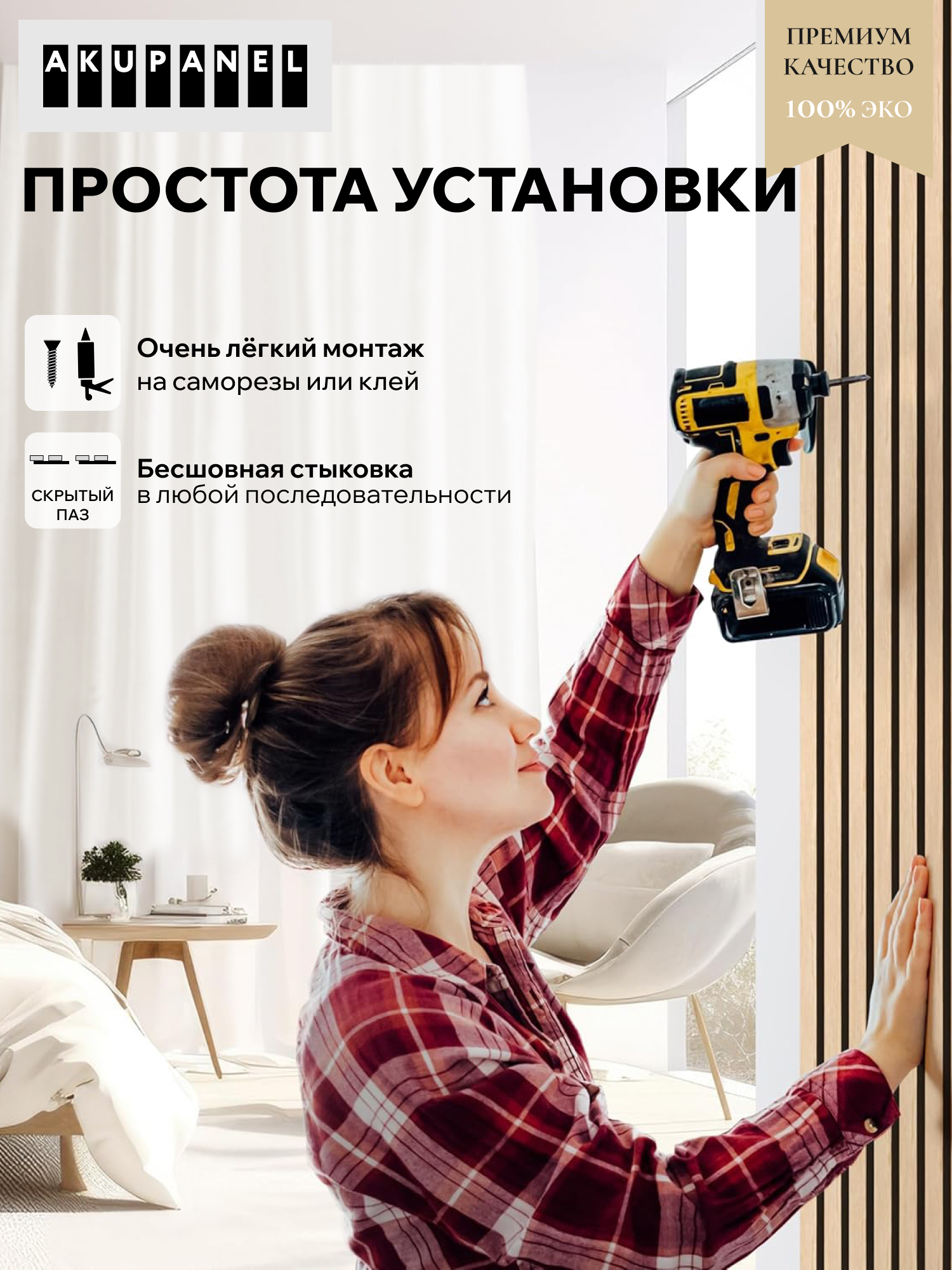 Акустическая реечная панель AKUPANEL - Декоративные рейки (Шпон, Дуб "Бурбон") и белая акустическая панель Акупанель 13 430 ₽
