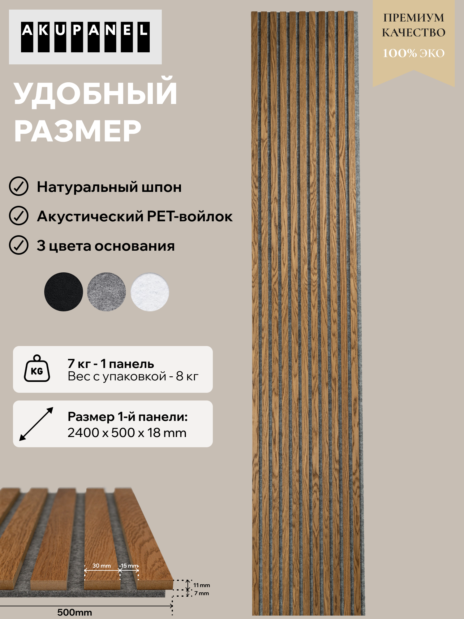 10 цен на Акустическая реечная панель AKUPANEL - Декоративные рейки (Шпон, Дуб "Бурбон") и серая акустическая панель Акупанель