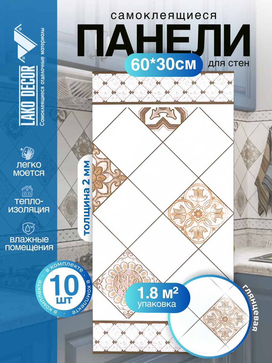 Отзывы на Мини Комплект 10шт Самоклеящаяся ПВХ плитка LAKO DECOR "Дамаск", толщина 2мм, 1,8м²