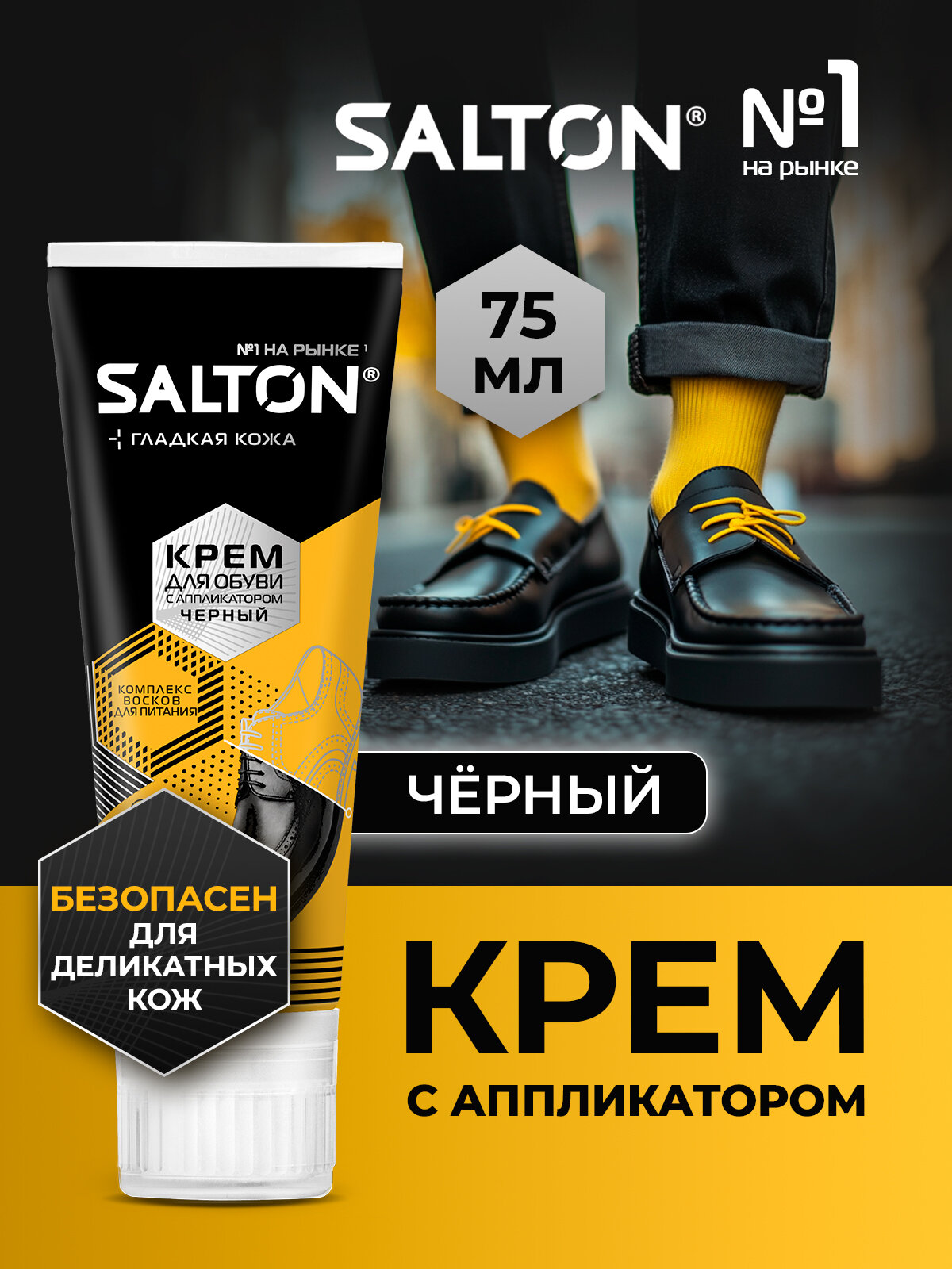 Черный крем для обуви в тубе с аппликатором Salton, для гладкой кожи, 75 мл 319 ₽