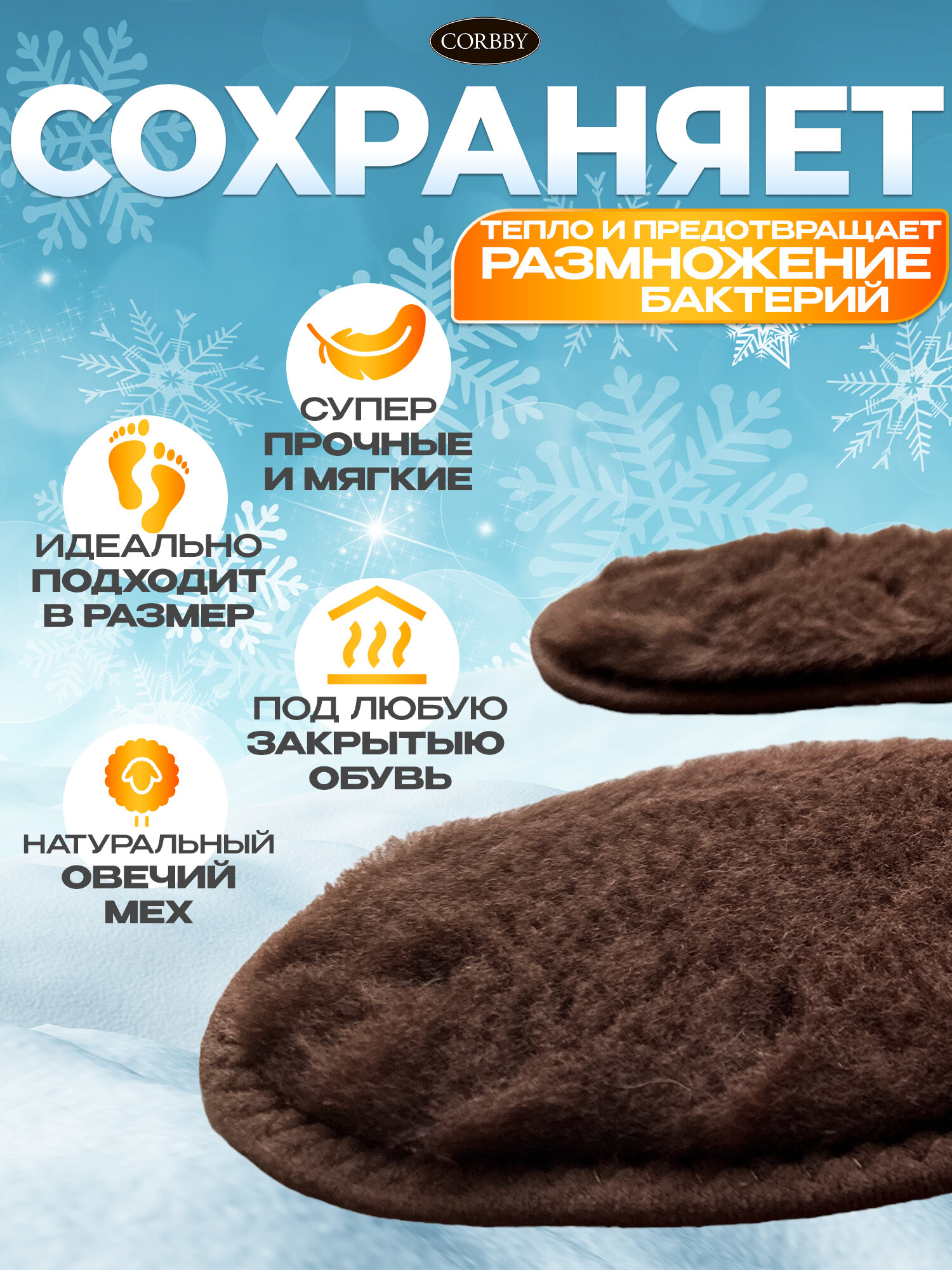 Отзывы на Стельки Corbby LAMBY, зимние, натуральный мех, коричневый, размер 35-36