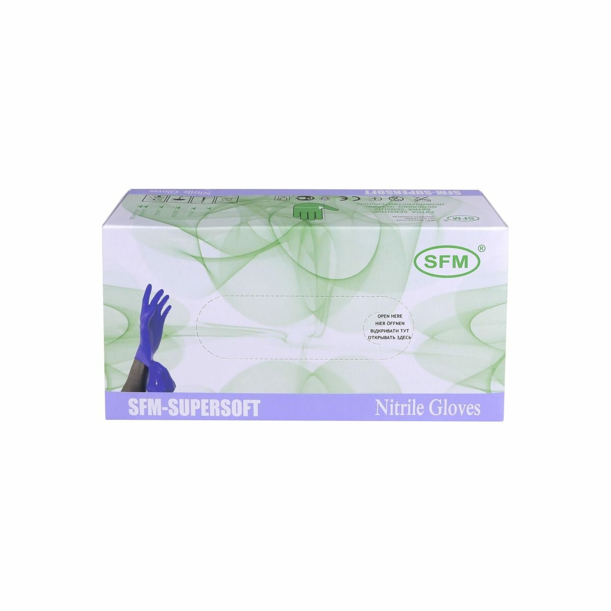 Перчатки нитриловые 24 см SFM-Supersoft Nitrile, цвет: фиолетово-голубой, размер L, 200 шт. (100 пар), неопудренные, текстурированные
