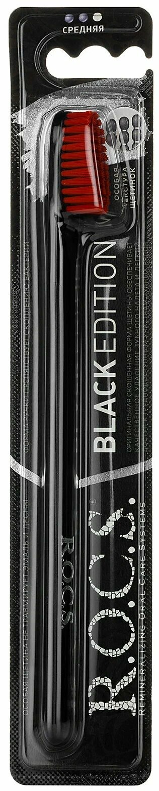 Зубная щетка R.O.C.S. Black Edition Classic, средняя жесткость, черная/красная информация: