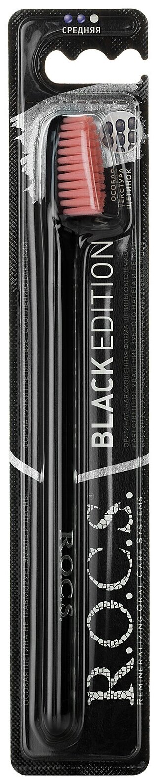 Зубная щетка R.O.C.S. Black Edition Classic, средняя жесткость, черная/розовая информация: