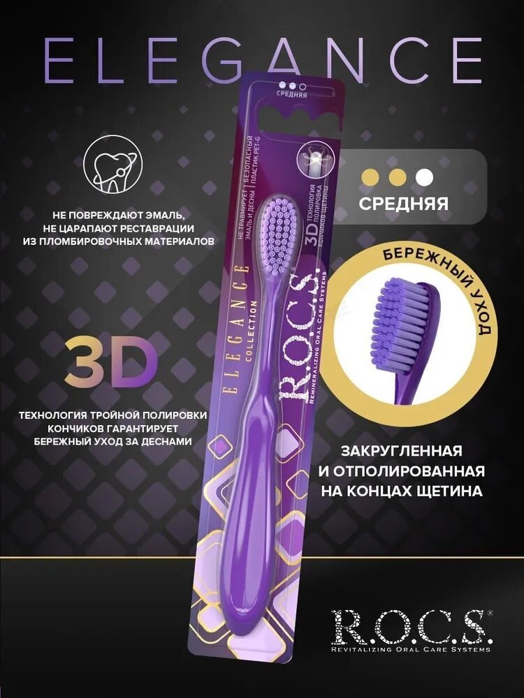 Зубная щетка R.O.C.S. ELEGANCE средней жёсткости, фиолетовая информация: