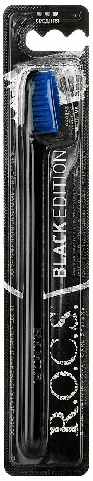 Зубная щетка R.O.C.S. Black Edition Classic, средняя жесткость, черная/синяя информация: